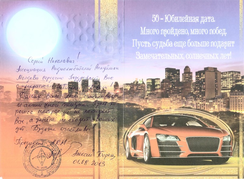 Сегодня, 1 августа 2013 года, исполнилось 50 лет, члену АРМ, большому другу молдавских радиолюбителей, заслуженному и уважаемому человеку в Украине, Степанову Сергею Николаевичу UR5FEO.
